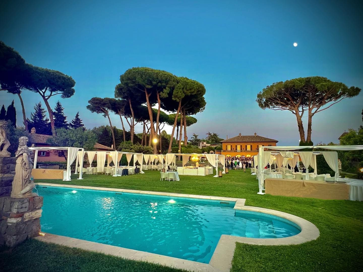 Grazie al loro impegno e alla loro dedizione, questa villa neorinascimentale ha ritrovato l'antico splendore e risplende di nuova luce in uno scenario naturale di per sé straordinario, diventando il luogo ideale per ricevimenti per matrimoni di classe, cene di gala, feste di capodanno in villa e banchetti in cui tutto è unico e affascinante.